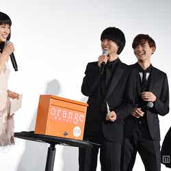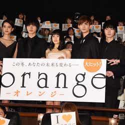12日、都内で映画『orange -オレンジ-』初日舞台あいさつが行われ、土屋と山崎をはじめ、竜星涼、山崎紘菜、桜田通、清水くるみらが出席。時を越えて手紙が届くというストーリーにちなみ、土屋と山崎は“過去からの手紙”を披露した。