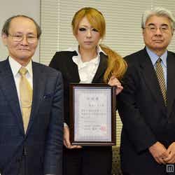 豆腐フェア運営委員長・東田和久氏から任命書を受け取った家村マリエは、目に感動の涙を浮かべながら「本当に嬉しく思います」と喜びをあらわに。「世の中の人におからの魅力を知ってもらいたい」と抱負を述べると、会場から拍手が沸き起こった。