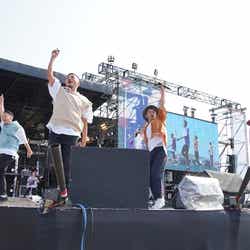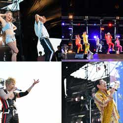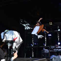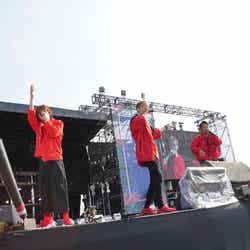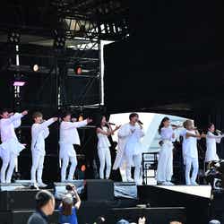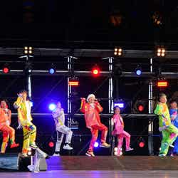 7色のカラフルな衣装で登場したのはDA PUMP。1曲目の「U.S.A.」ではイントロだけで歓声があがり、もちろん全員でのいいねダンスで会場が縦に揺れる。いきなりテンションはMAX状態。「if…」、「桜」や8月7日発売のニューシングル「P.A.R.T.Y.~ユニバース・フェスティバル~」での“バイーンダンス”も披露された。日も暮れかけた頃、ラスト「We can’t stop the music」では、拳を上げたメンバーに西日が照らされ、歌とそのヴィジュアルに観客が酔いしれた。