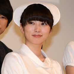 この日は、志田や主演の堀北真希をはじめ、高梨臨、菜々緒、MEGUMI、木村多江が役衣装であるナース服で登場。それぞれの個性に合わせたオリジナルデザインのため、キャストが立ち上がってそのデザインをアピールする場面もあったが、菜々緒の後に順番が回ってきた志田は「菜々緒さんの後だと罰ゲームみたいだから、立たないようにしようと思った」と恐縮そう。MCから「せっかくなので…」と何度か要望を受けると、照れ笑いを浮かべながらも立ち上がり、フレア型スカートのバックにリボンがついたキュートなデザインをアピールした。