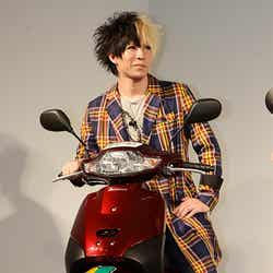24日、都内にて行われた二輪バイクの新テレビCM発表会に出席。イベントでは、CM撮影時に使用したバイクにまたがってトークセッションが行われた。