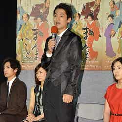 7日、都内で行われた木曜時代劇「まんまこと~麻之助裁定帳~」(7月16日スタート/NHK総合、毎週木曜よる8:00~8:43 ※全10回)の試写会に出席。劇中で三角関係になる福士は、自分だったらどちらを選ぶのかと問われると「その質問は酷じゃないですか?(笑)」と困惑した表情で、「どちらも選べない…。個人的に、裏で言おうと思います」と言って穏便に済ませ、笑いを誘った。
