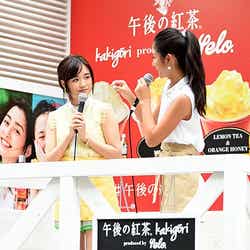 13日、都内に紅茶飲料によるかき氷専門店が夏季期間限定でオープン。その初日にCMキャラクターの大原、季葉の2人がオープニングセレモニーに出席した。