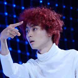 菅田は赤髪、白のタートルネックに赤いスーツを合わせたド派手な衣装で登場。CMで演じている“鬼”を彷彿とさせる赤で決めた姿で、MCのお笑いコンビ流れ星に「赤鬼だね~!」「鬼ちゃん」と声をかけられると「おいっす!おいっす!」とサービス精神旺盛に応じ、会場を沸かせた。