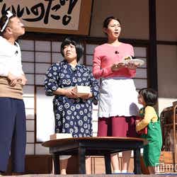 バカボンのパパ役で松下と夫婦を演じた上田は、「『俺のレベルに合わせて下手にやってくださいね』と言ったのですが、松下さんはガチンコタイプだから、本気でおやりになるんですよね。だから、僕の下手さ加減がより浮き立つといいますか…」と苦笑い。「なんでこの人はこんなに上手になるのかな」と松下の演技力に脱帽した。オカリナも「松下さんって、すごいんだなと思いました。演技をする前に、1個前のセリフを自分で言ってから、入ってやるんです。それを見て、女優さんはこうやって世界に入って行くのだなということを目の当たりにしました」と、松下の女優魂に感嘆。2人の言葉を聞いた松下は、ひたすら恐縮していた。