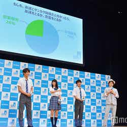 三人は設定上「先輩」「後輩」「同級生」という役柄だが、広瀬は「先輩との関係と同級生との距離感って全然違う、先輩だとおしとやかになっちゃう部分もあるけど、同級生だと気軽に話せる部分もある。それがそうじゃなくなる瞬間が胸キュンだなって思ってやってました」と振り返った。新CMは24日よりオンエア。ブランドサイトではCMでは語られなかったサンカク関係の行方や「憧れ」「友情」「恋」の間で揺れ動く3人の気持ちを、三者三様の視点から繊細に描いていく。23日からは「友人」「先輩」「後輩」という居心地のいい関係から「恋人」「恋敵」という関係へと一歩進める3人の関係性を描くEpisode1、2をWEBドラマにて公開。3人の恋の結末を描くEpisode3は、サイトでのユーザーからの投票を受けて5月上旬に公開予定。