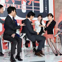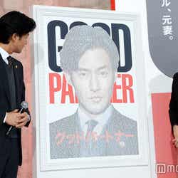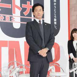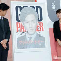 今回はともに弁護士、元夫婦でライバルといった間柄を演じる竹野内と松雪。竹野内は「今回も夫婦…離婚しているけど2度目の夫婦役ということで光栄です」とコメントするも、松雪を横に「隣にいて話すのは…(笑)」と照れ笑い。それでも、松雪を「引き出しがいっぱいある方。毎回一緒にお芝居して、勉強になるし楽しいです」と称賛した。