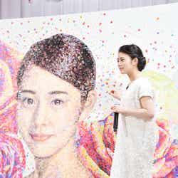 マスキングシールを13万枚以上使い、総製作時間322時間を掛けて描かれた作品で、高畑は「遠くから見ても美しいのですが、近くで見ても色んな色が重なっています。マスキングテープの素材なので色が少し透けるんです。それがとっても綺麗だな」と感動が込み上げてきた様子。「こんなに大きな自分の顔を見ることがないので、変な感じですけど、嬉しいです」と語り、高畑自身がシールを貼って作品を完成させると「華やかだし、柔らかいし、凄く素敵だと思います」と笑顔を弾けさせた。(modelpress編集部)