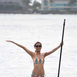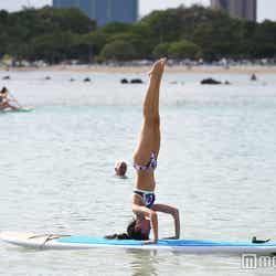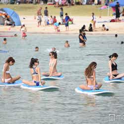 その後、安井、香川、izu、メロディー、里見、Kiyの6人は、水着に着替えてビーチへ。サーフボードよりも大きく浮力の高い“スタンドアップパドルボード”を使って水の上に浮かんで行う「サップヨガ」に挑戦した。インストラクターによる指導のもとスタートすると、美意識の高い彼女たちは、水上で行うヨガにもすぐに慣れ、ゆったりとした時間を満喫。「サップヨガ」を楽しむ美女たちに、釣りを楽しむ地元の人々や、観光客たちは目を見張り、海水浴を楽しむ子どもたちからは、ポーズの1つひとつに歓声を上がっていた。