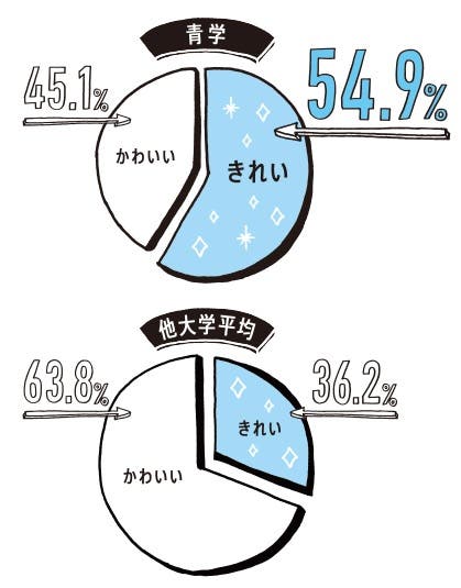 カラコンで与えたい印象は、立教が他大学と同じく「可愛く見られたい」派が多数を占める中、青学は半数を超える54.9%が「綺麗に見られたい」派という違いも出ていました。青山という場所柄、洗練されたイメージを持たれたいと願うのかもしれません。カラコンによって「可愛い」と「綺麗」を使い分けられるのも、今の女子大生の強みのひとつ。