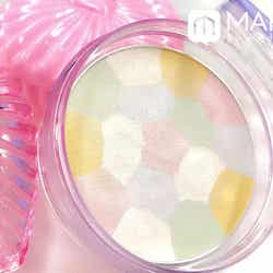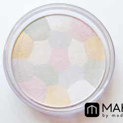 ピンク、オレンジ、ホワイト、グリーン、ブルーのカラフルな色味が合わさった【無印良品】の「ルースパウダー プレストタイプ“ルーセントホワイト”(973円/税抜)。