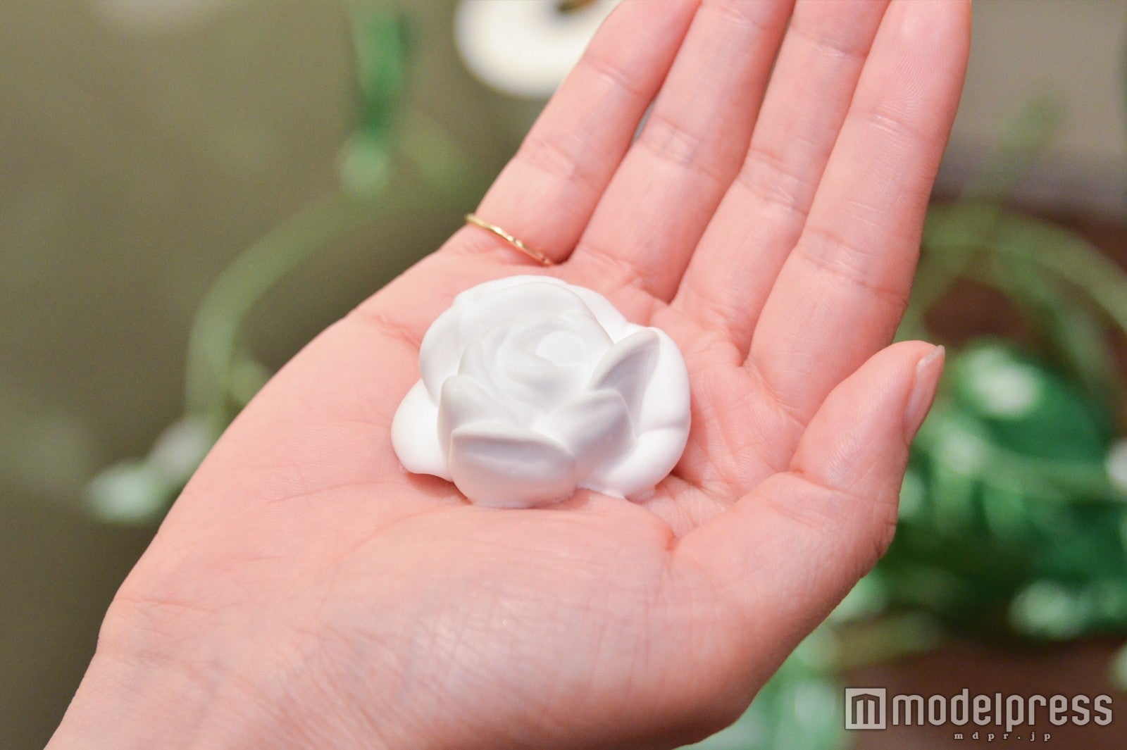 両手でプッシュすると濃厚なバラの泡が咲く「ビューティーホイップソープ」は使うたびにわくわくする一品。またバラの花が開くと同時に、優しくて華やかなバラの香りがふわっと広がり、リラックスした気分に。
