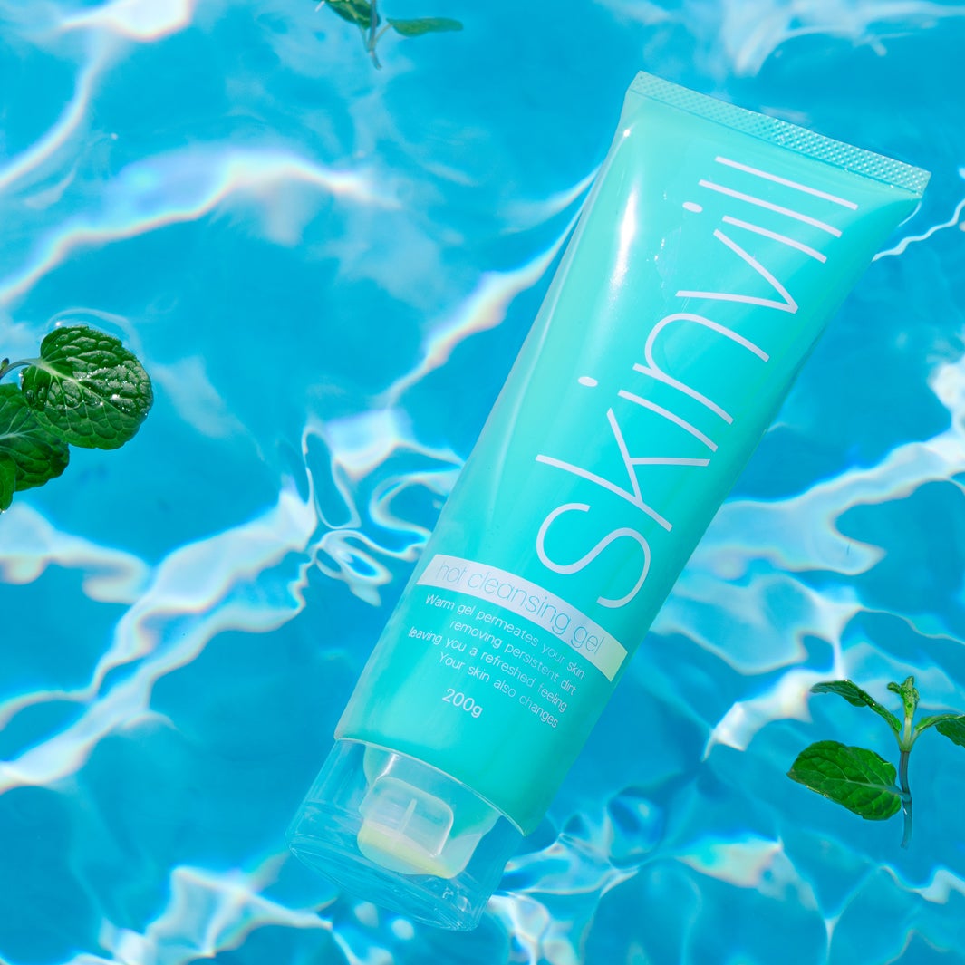 手にとって肌をやさしくマッサージすると、じんわりと温まるジェルが毛穴を開き、メイクや汚れをキャッチしてくれる温感ジェルクレンジング。さらに“クール”さをプラスした「ホット&クールクレンジングジェル」が、skinvill より登場しました。