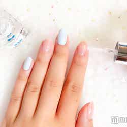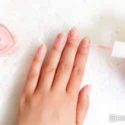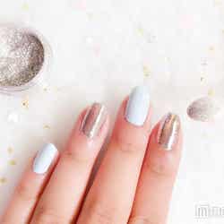 手持ちのマニキュアを塗り、その上からパウダーを重ねると、マニキュアの色によって異なる色味が楽しめるので試してみるのも◎。また、手持ちのカラーマニキュアを全体にのせ、先端だけに、フェアリーダストパウダーを重ねるとフレンチミラーネイルが完成します。