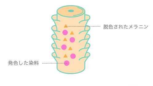 明るさ・発色・ケア感などの特長によって内容成分や仕上がりは様々ですが、どんなヘアカラーでも1剤と2剤という2種類の薬剤が使われること、混ぜた薬剤で発生した酸素がメラニン色素を脱色して発色させるのは同じです。