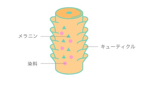 Point1.市販のヘアカラーに限らず仕組みはどれも一緒カラー剤を塗布する前の髪は弱酸性。つるつるの髪を保護しているキューティクルを開いて内側に成分を浸透させるのが、ヘアカラーの基本です。