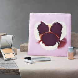 佐藤 翠氏によるパンジーのイラストが大胆にデザインされたオリジナルポーチ付き。