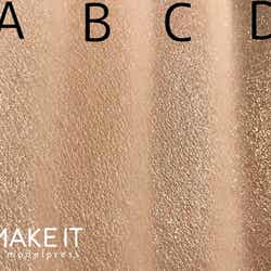 このように濃淡3色のベージュと締め色のブラウンで構成されており、重ねるだけで立体感のあるグラデーションが完成します。