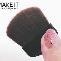 チークをブラシにとり、ひと塗りでチークのお直しが済むんです。