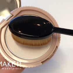 この時、リキッドファンデーションにも使えるような毛が密集したブラシの方を使うのがポイント。