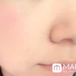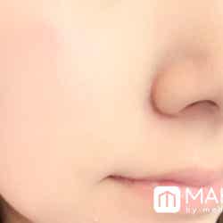 次にぼかすようにチークの上にブラシを滑らせ、仕上げに頬骨に沿って磨くようにブラシを動かして完成です。