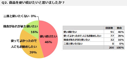 さらに一度使った人が「使い続けたい」「使ってよかったので人にもお勧めしたい」と85%を占めています。「二度と使いたくない」という人は、いなかったそうです。