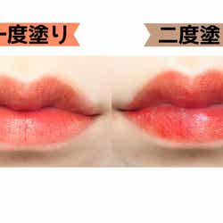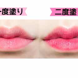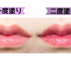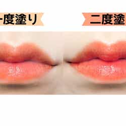「リップティントジャム」の発色はクリア過ぎず、かと言って濃厚すぎず、まさに“ジャム”のようにじゅわっと染まる色合いが絶妙にカワイイのです。