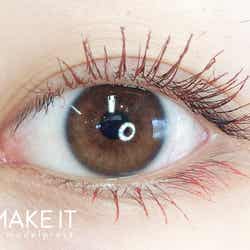ブラックではなく、カラーマスカラを使うだけで一気にオシャレな目元に。