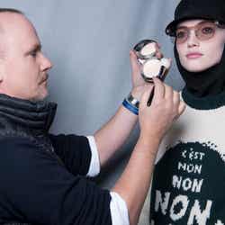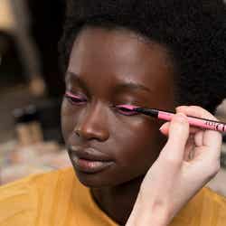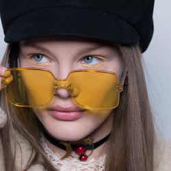 ピーターは「色を際立たせながら、今回のコレクションでまとっていたサングラスのシェードと呼応させるアイメイクアップをクリエイトしました」と語っている。