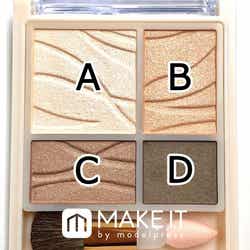 マットな質感のCとDがしっかり引き締めてくれるのでくっきりとした目元になりますよ。