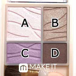 Aのパープルホワイトがまぶたのくすみを飛ばして透明感をプラス。