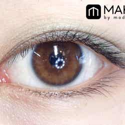 左のブラウンをブラシでふんわり乗せて、右のブラウンを指でグラデ塗りすると、頼れる大人な眼差しになれますよ。