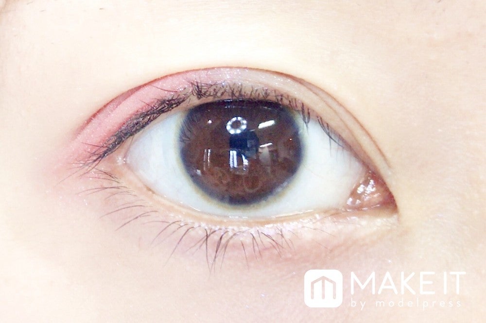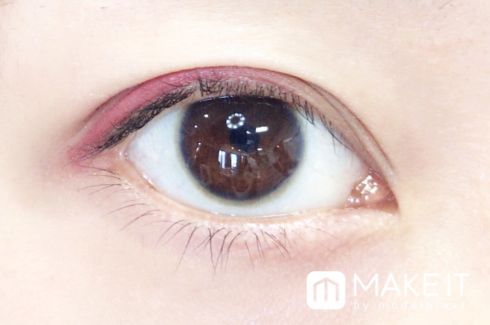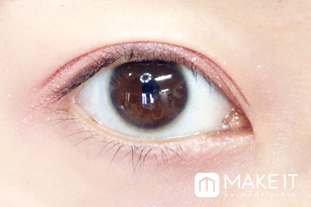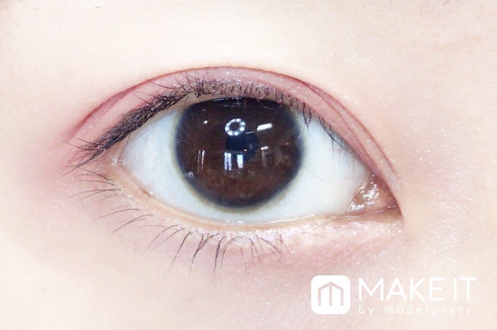 チョコレートのように甘いブラウンとダークピンクが混ざり合ってキュートな目もとに仕上がります。