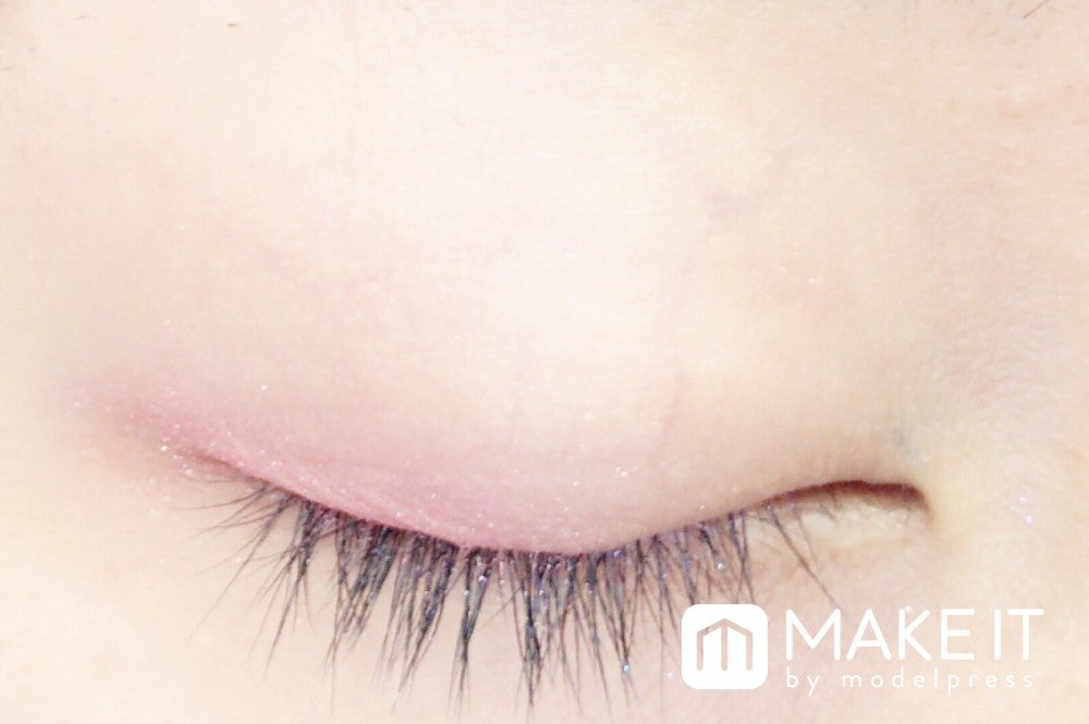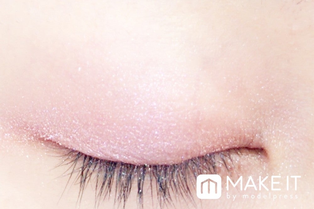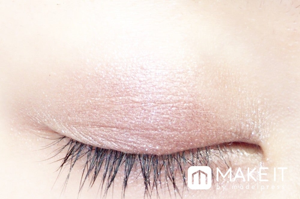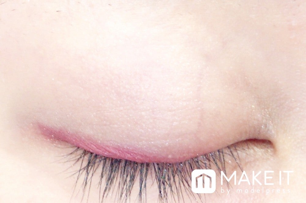 シャドーカラーのピンクがフォギーな目もとに仕上げてくれます。
