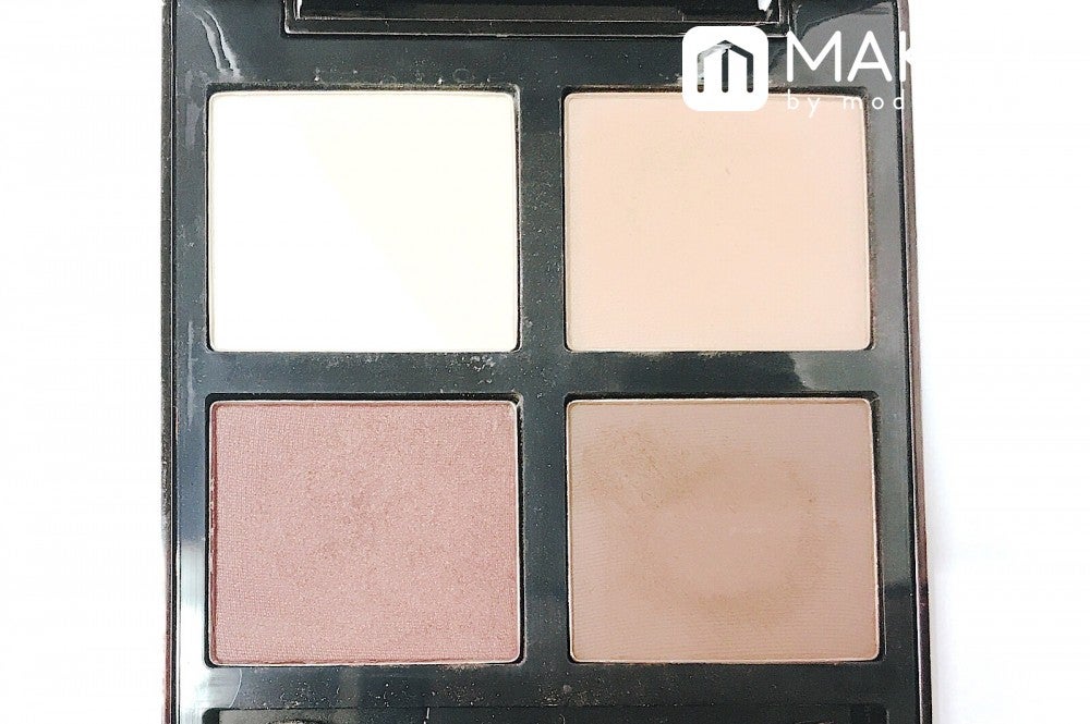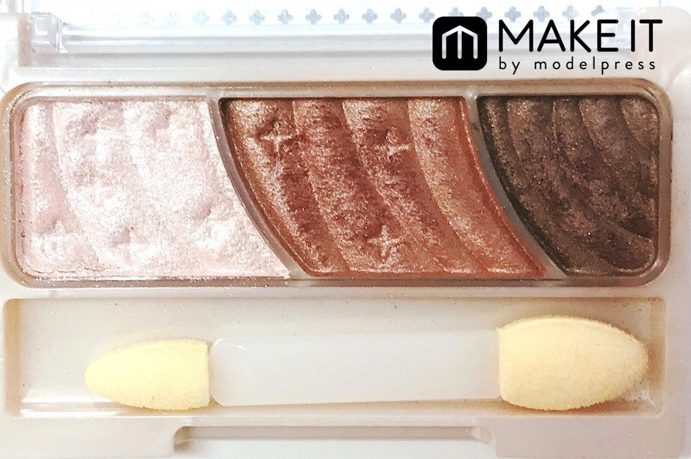 アイシャドウパレットの右上、右下、左下の順に重ねます。