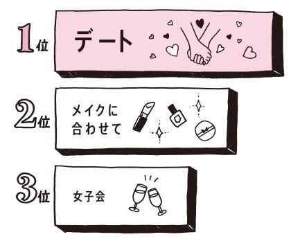カラコンを着けるシチュエーションについての質問では、早稲田・法政は「デートの時」が1位という結果。彼に可愛く見られたい早稲田・法政に対し、慶應・上智は「女子会」など同性ウケを意識する回答が多く集まりました。