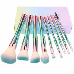 マーメイドを連想させるようなピンクとブルーのコントラストがキレイなこのファンデーションブラシは、便利な10本セット。