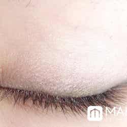 まずは左下のオフホワイをアイホールにのせて、まぶたのくすみを飛ばします。