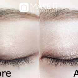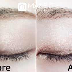 指やスポンジでまぶたに塗り、その上からアイシャドウを重ねるとよりキレイに仕上がっているのがわかりますよね。