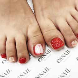 鮮やかなレッドはつま先から覗かせると良い感じに目立つのでフットネイルにはイチオシのカラー。
