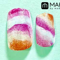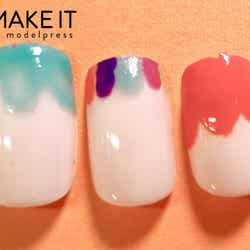 濃淡に差のあるカラーでもスポンジに塗ってから、爪にのせることで混ざり合わずカラーがキレイに反映されます。