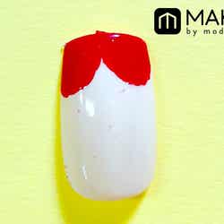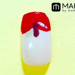 爪先の中央にレッドのマニキュアをのせれば、チェリーののった簡単パフェ風ネイルにもなりますよ。