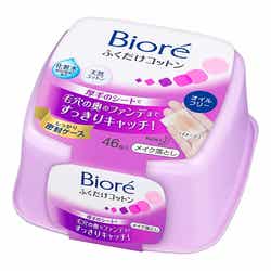 ビオレのシートクレンジング「メイク落としふくだけコットン」は、厚手のシートが特徴。