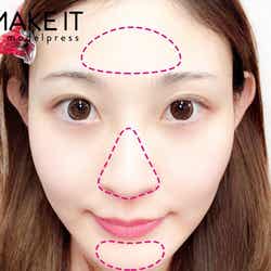 顔全体のテカリが気になる方は顔全体に薄く伸ばして。