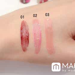 リップは2色のマーブル模様ですが、グロスは3色が組み合わされているタイプ。