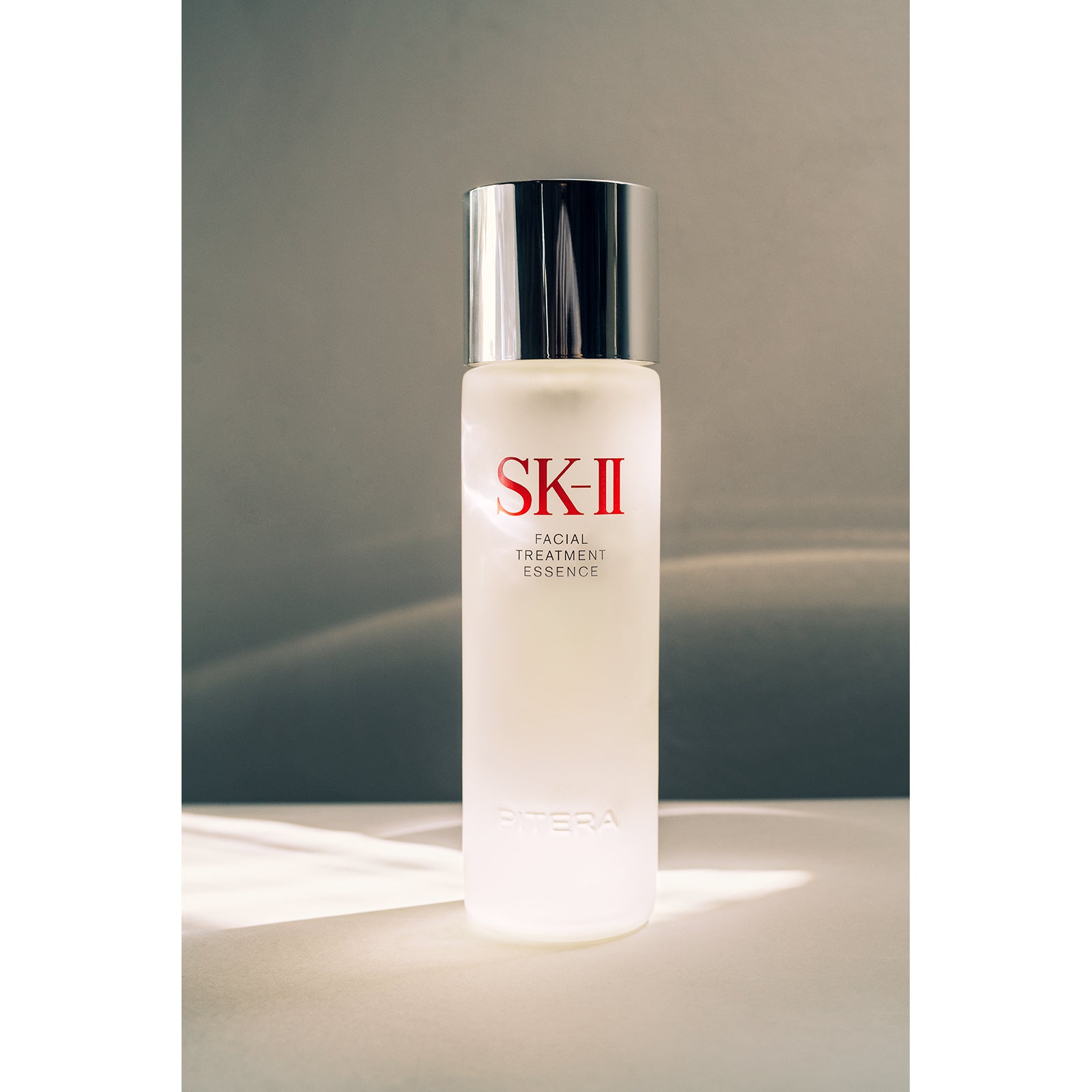 彼女にすっぴん素肌での撮影に臨む勇気を与えてくれた、SK-II「フェイシャル トリーメント エッセンス」。美肌の鍵を握るスキンケア成分ピテラTM(※)を90%以上配合し、使う人それぞれの肌悩みにアプローチ。クリアな素肌になりたいと願う女性に寄り添い、誕生から38年間日本のみならず、今では世界中から指名される唯一無二の存在となっている。