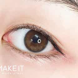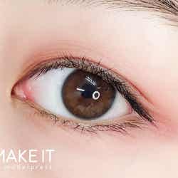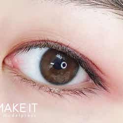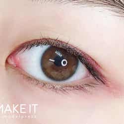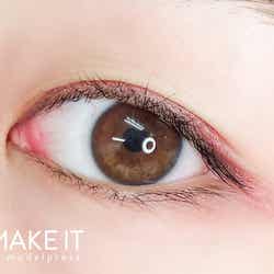赤みのある色を下まつ毛のキワに細く入れると血色感のある赤みメイクに。