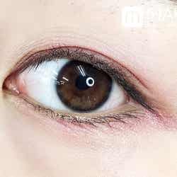 目尻には大チップで左下のバーガンディを入れ、右下のココアブラウンをライン状に入れて引き締めます。