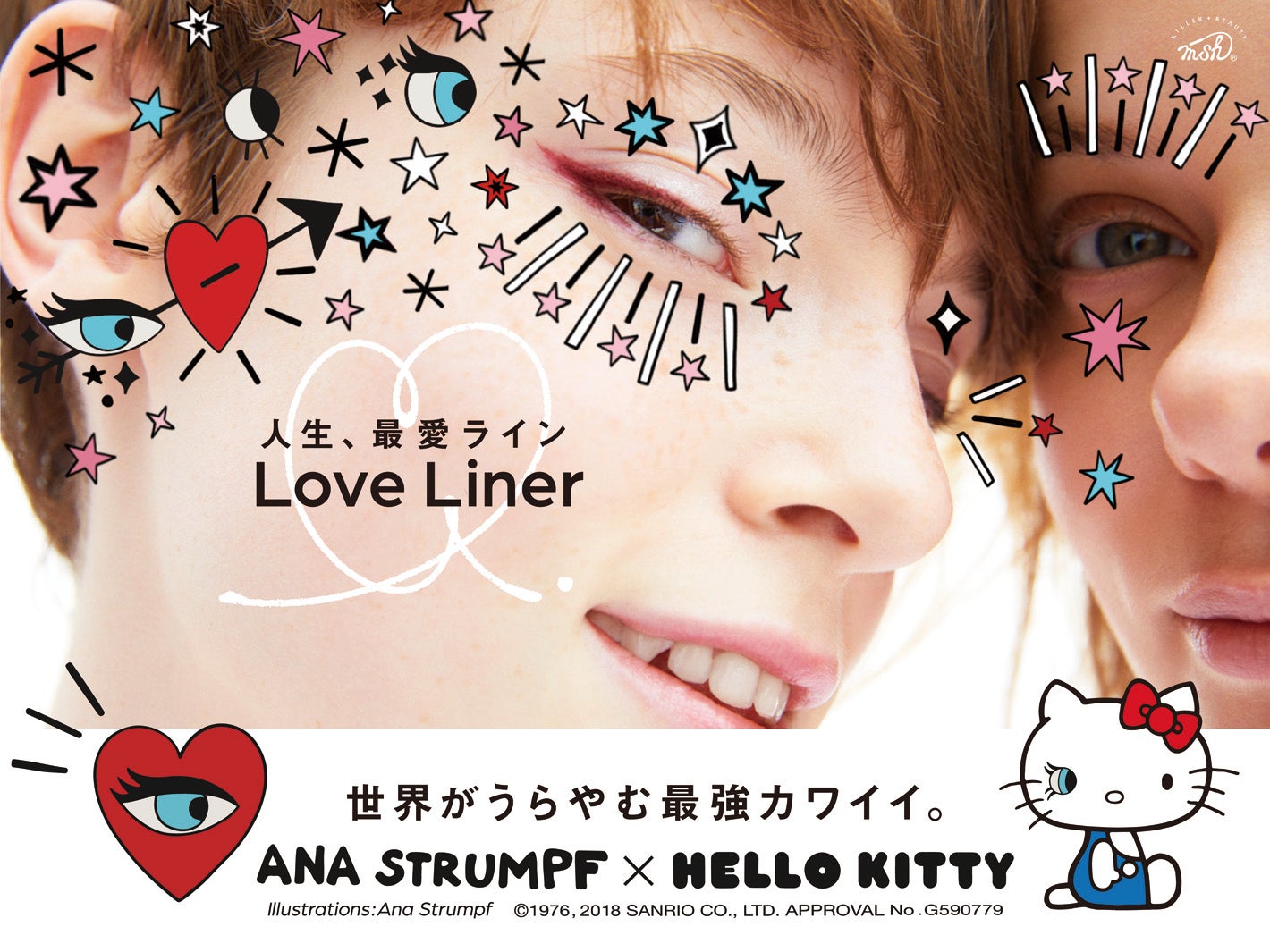 世界中で人気のキャラクター・ハローキティがかわいい目元メイクをして登場!ヘアメイクアーティストやモデル・タレントからも幅広く愛されるアイメイクブランド「ラブ・ライナー」の誕生10周年を記念して、世界的なイラストレーターのアナ・ストランフ(Ana Strumpf)氏がハローキティにメイクを施したコラボデザインに注目ですよ。