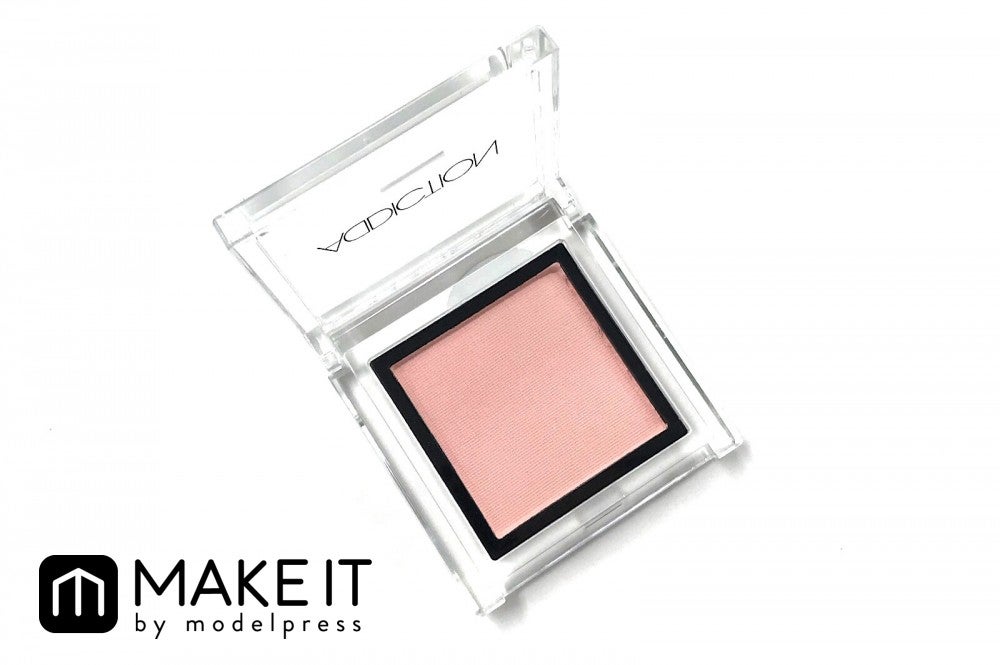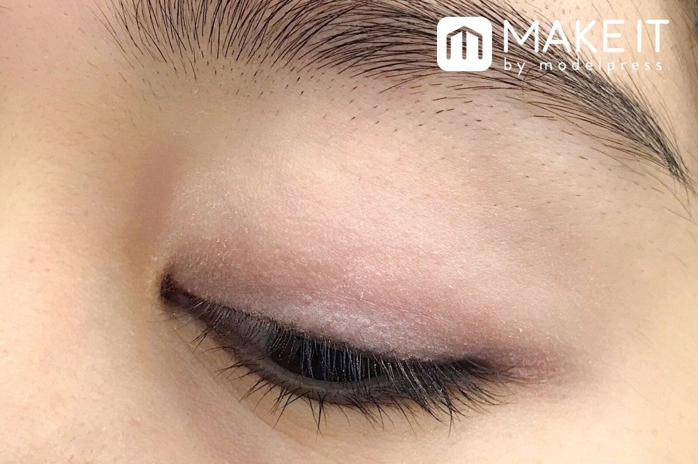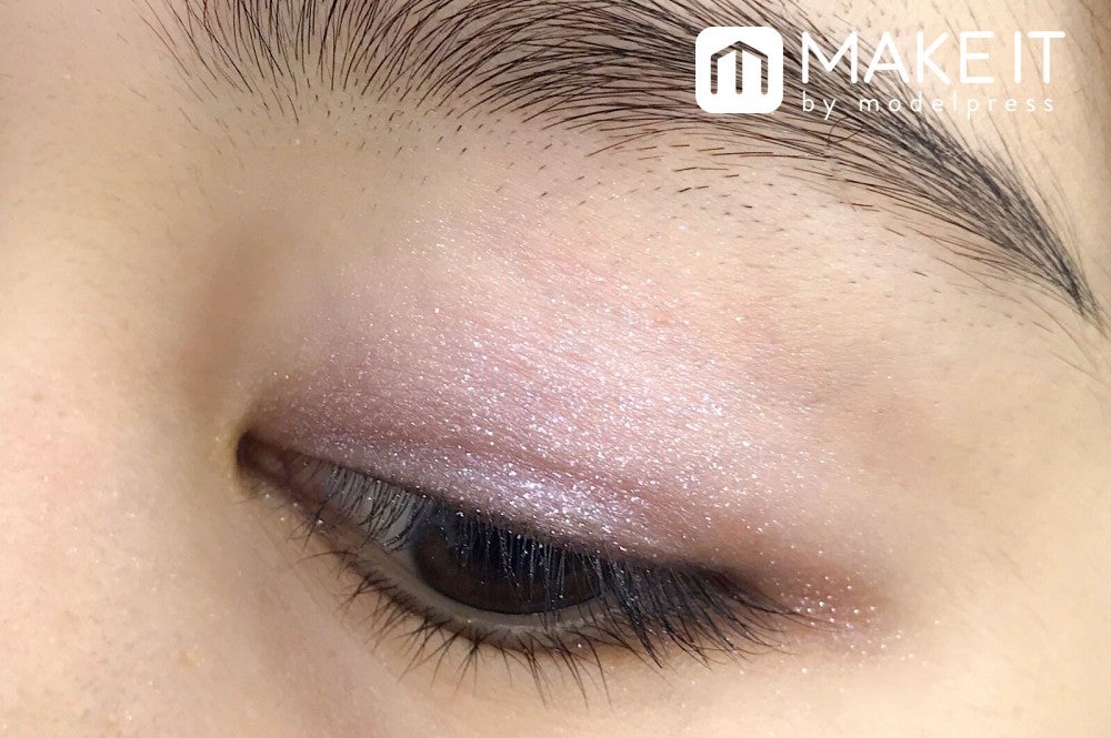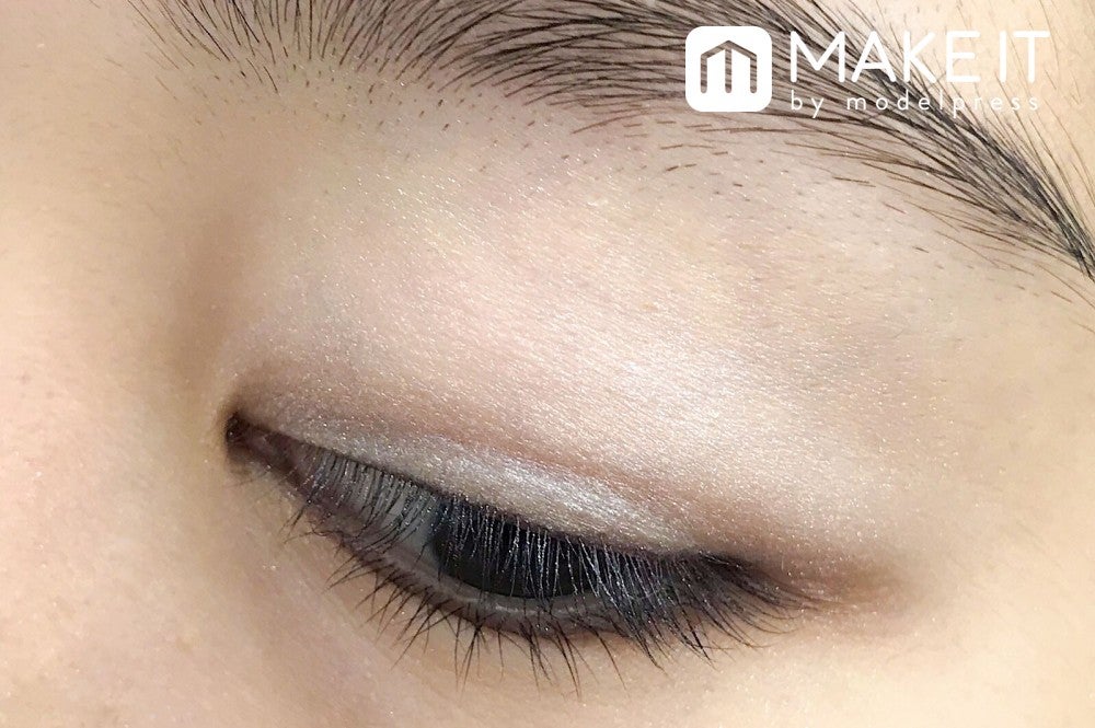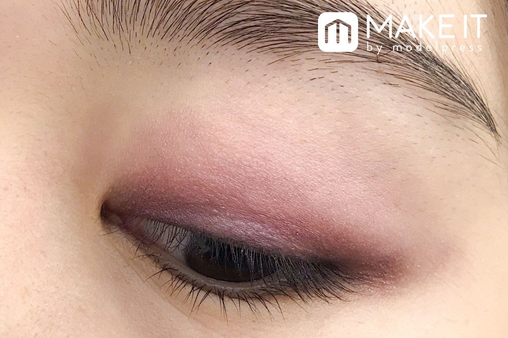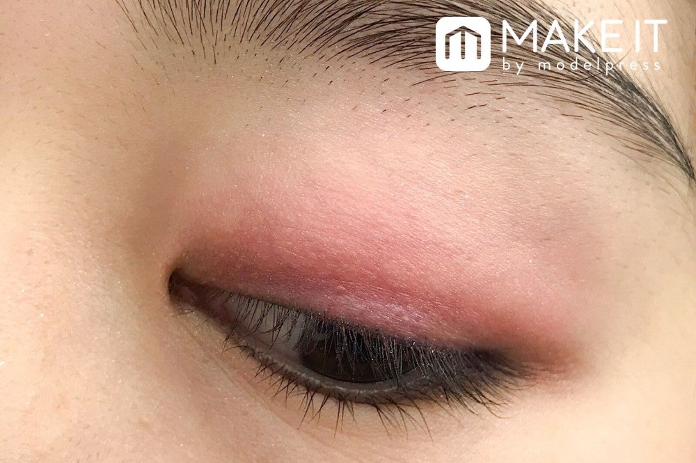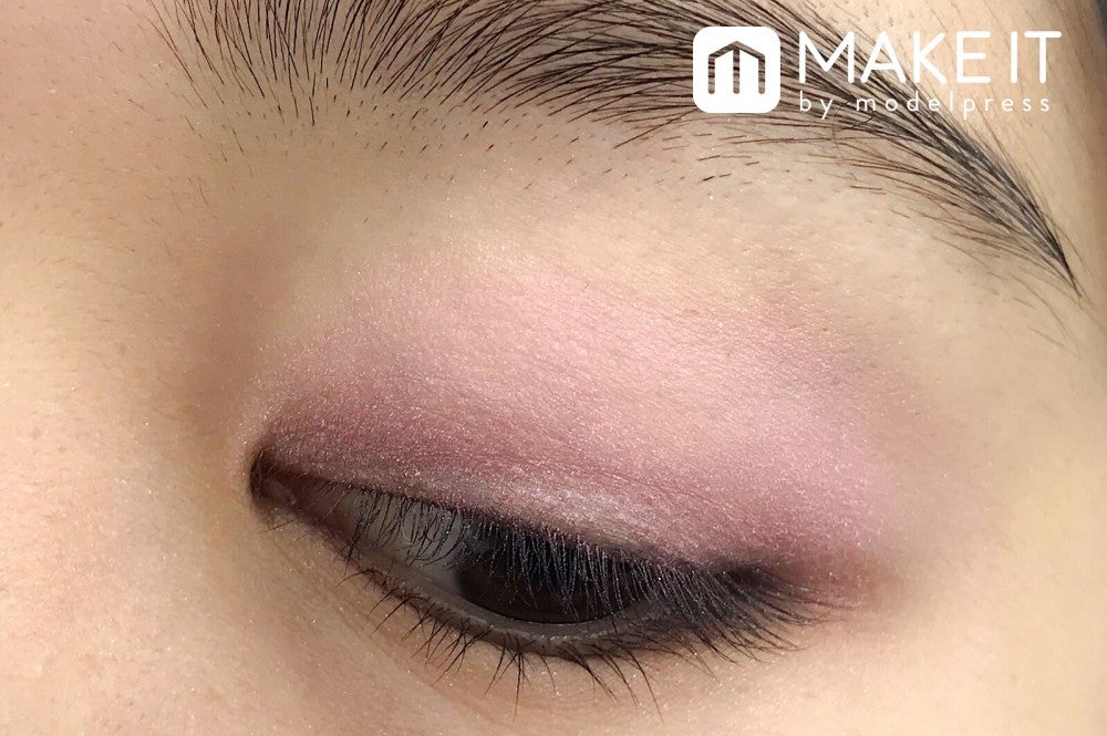 マットなピンクベージュカラーはまぶたに広くのせて、美しい発色を楽しんで。
